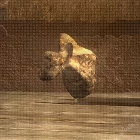 Описание: Распространенный артефакт, формирующийся в гравитационных аномалиях. Вопреки своему массивному внешнему виду, Галька обладает пористой структурой и легко крошится под давлением.