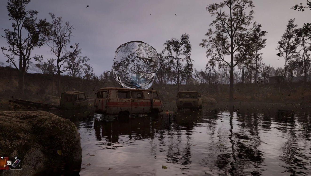 Если вы оказались внутри зоны воздействия Бульбы, важно как можно быстрее найти укрытие. Это может быть как крупный камень, так и обломки разбитой машины. Главное — оставаться в укрытии, пока Бульба дышит. Как только она выдохнет, у вас будет всего 2-3 секунды, чтобы двигаться по территории, прежде чем аномалия снова начнёт всасывать объекты.