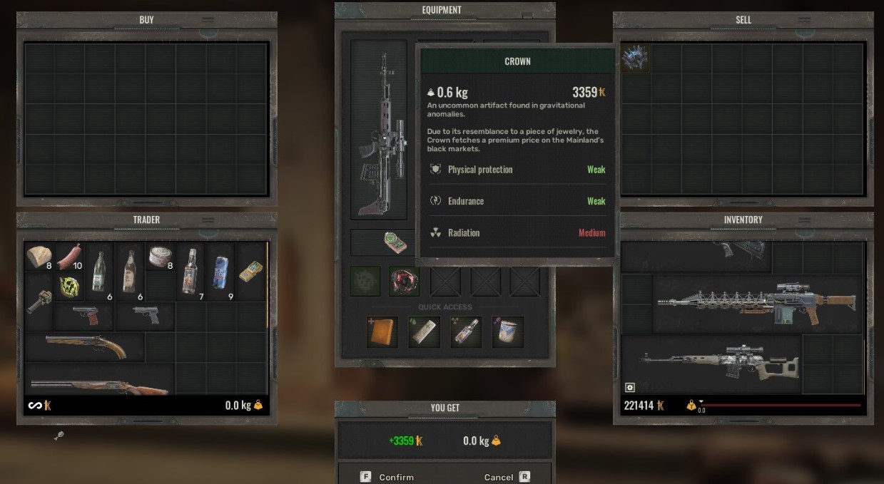 Если вы обнаружили дубликаты артефактов или решили заняться их поиском ради заработка, стоит помнить о разнице в ценах. Торговцы предлагают за артефакты сумму значительно ниже их стоимости, указанной в инвентаре. Этот нюанс нужно учитывать, если ваша цель — получить максимальную прибыль от продажи.