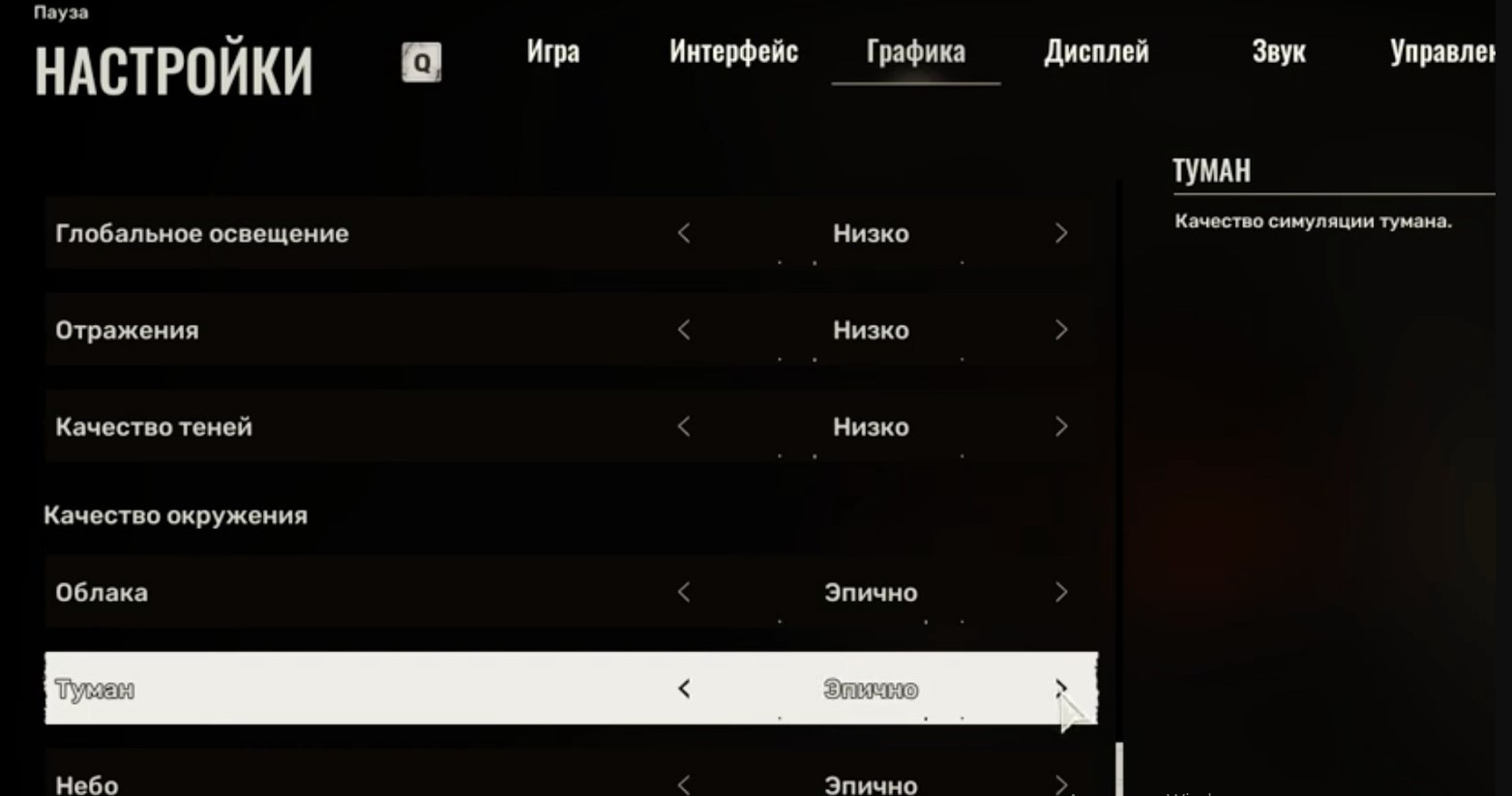 Для исправления проблемы с рябью экрана откройте главное меню и перейдите в раздел Настройки. Затем выберите вкладку Графика и прокрутите вниз до параметра Туман. Установите значение Эпично, если ранее был выбран минимальный уровень.