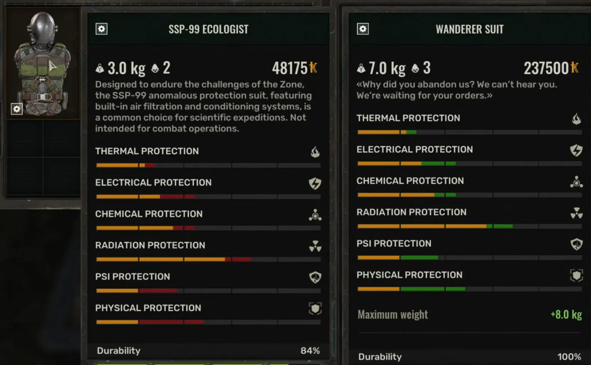 Эти костюмы не только повышают грузоподъёмность, но и обеспечивают дополнительную защиту от опасностей Зоны, что делает их незаменимыми для длительных вылазок.