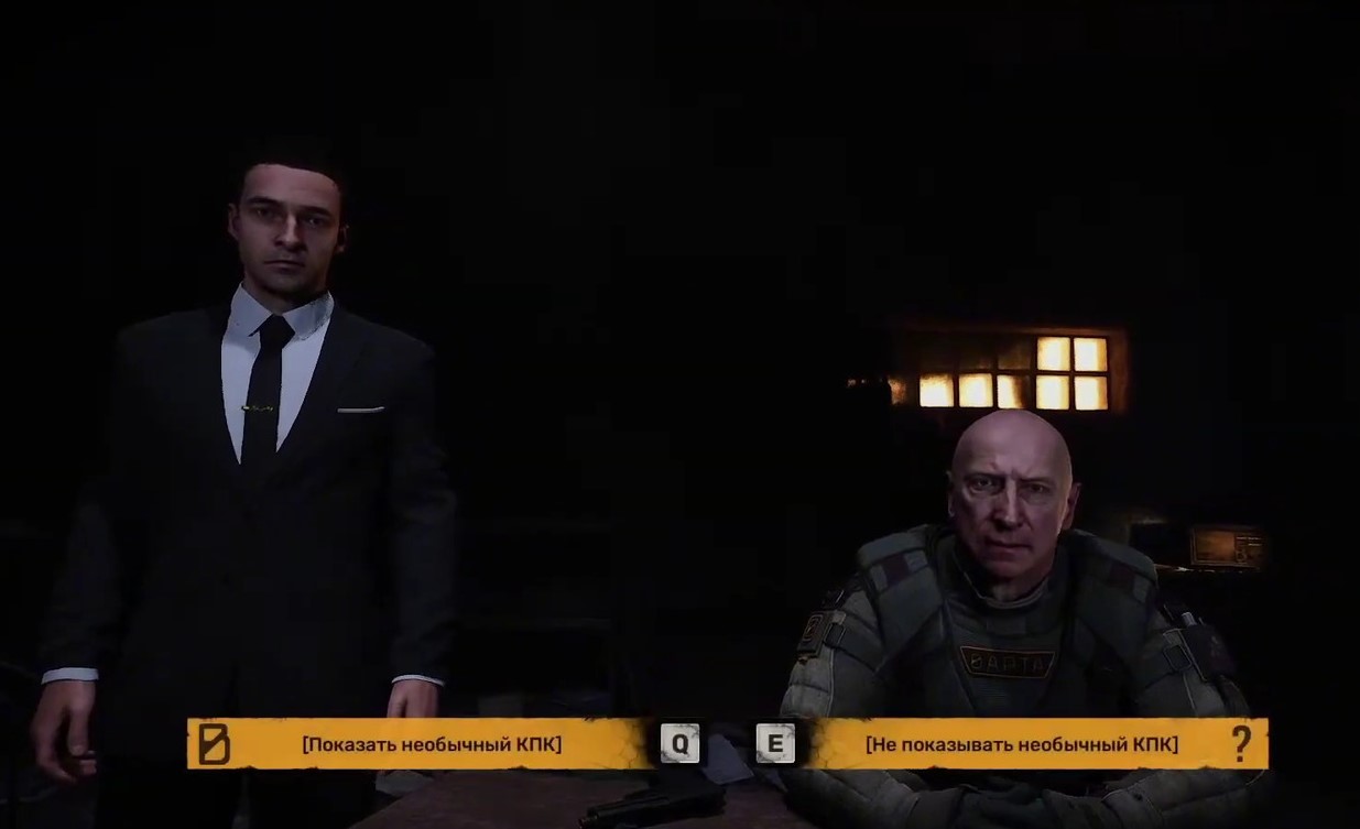 Поднимитесь на второй этаж здания и выслушайте речь полковника Коршунова. Во время диалога у вас появится возможность показать ему найденный ранее необычный КПК. Если вы передадите устройство полковнику, он наградит вас значком Варты и вручит автомат Комбатант.