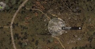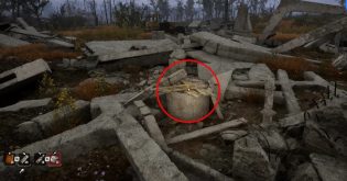 Один из тайников, куда вы можете положить водку, расположен на свалке бетонных блоков. Он находится внутри небольшого каменного кольца, прикрытого сверху досками. Чтобы добраться до рюкзака, сломайте доски. Заглянув внутрь, вы обнаружите следующие предметы: