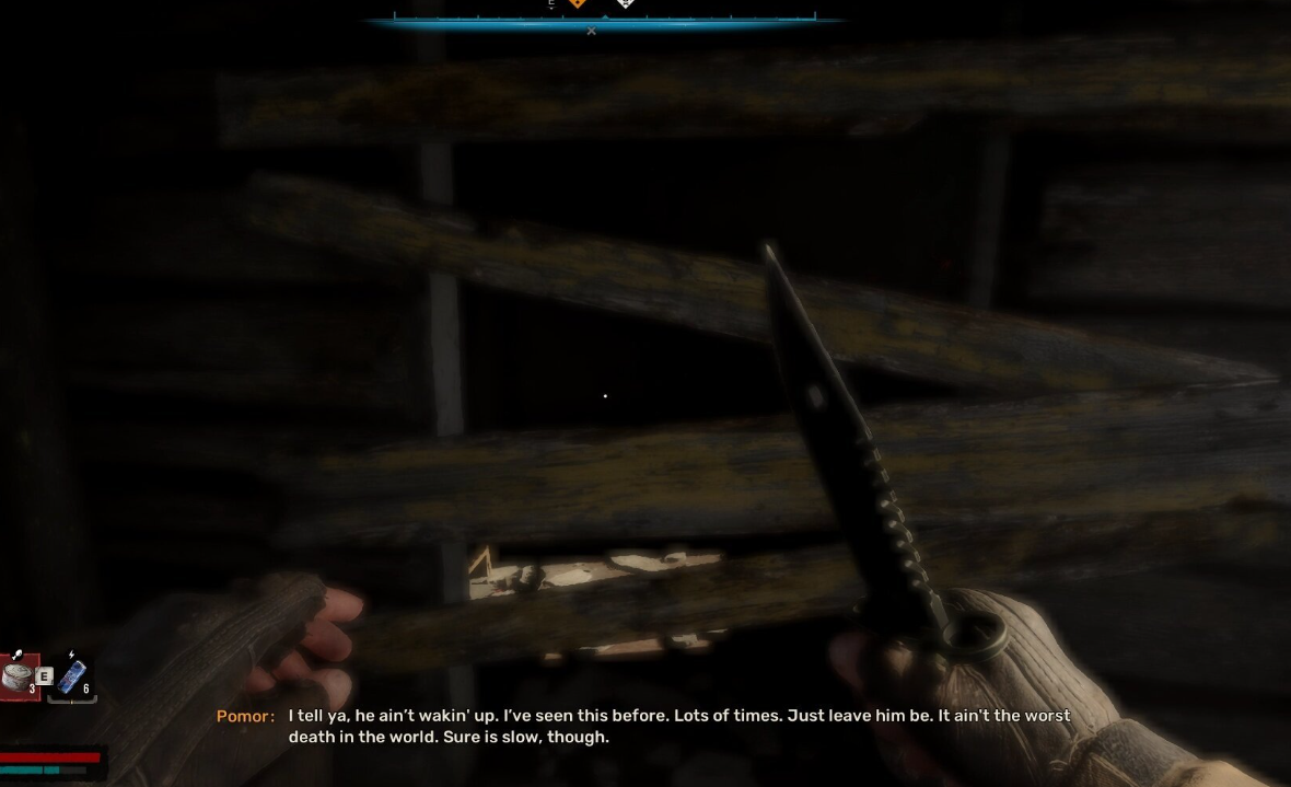 Приближаясь к деревне, не торопитесь заходить на её территорию. Справа от вас будет дом, где обитает сталкер по прозвищу Помора. Если вы не хотите расставаться с 2000 купонов или брать дополнительный квест от него ради получения полезной информации, наш гайд поможет вам пройти это задание самостоятельно.