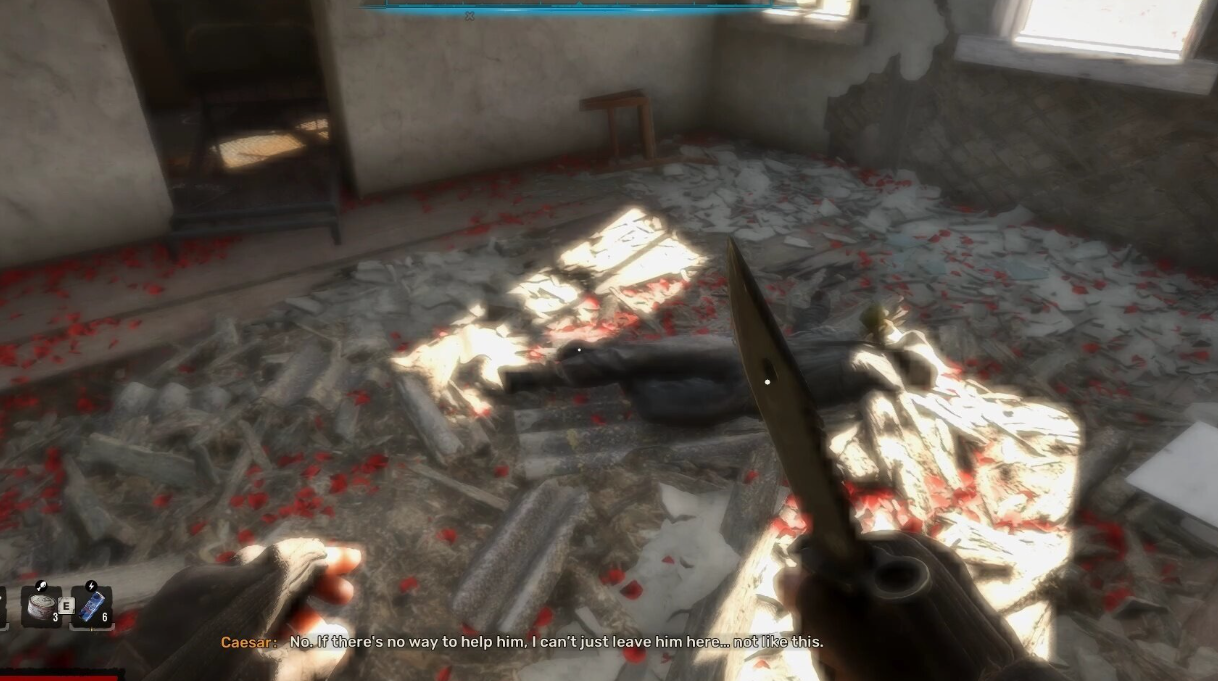 Затем вернитесь на дорогу и исследуйте руины, напоминающие то ли сарай, то ли колодец. Там вы обнаружите еще один труп. У него можно найти немного патронов и оружие, хоть и в плачевном состоянии.