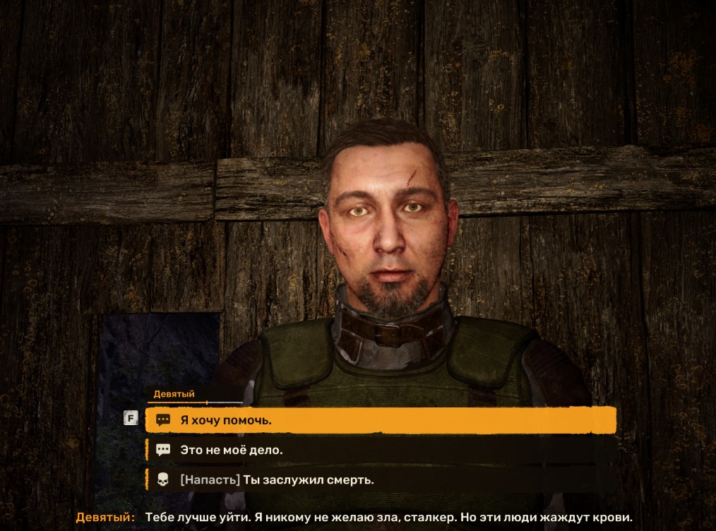 К сожалению, в этом выборе нет пути к мирному разрешению конфликта. Независимо от того, какой диалог вы выберете, вам предстоит принять решение: либо защитить Девятого, либо поддержать сталкеров и устранить его. Одного из них придется убить.