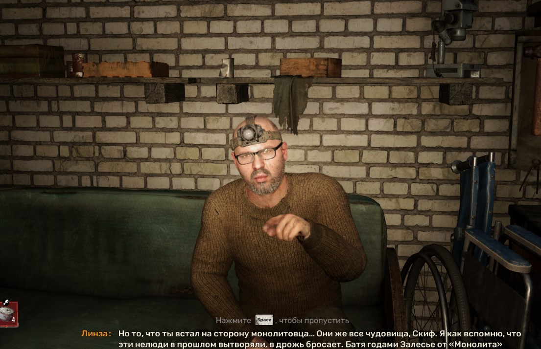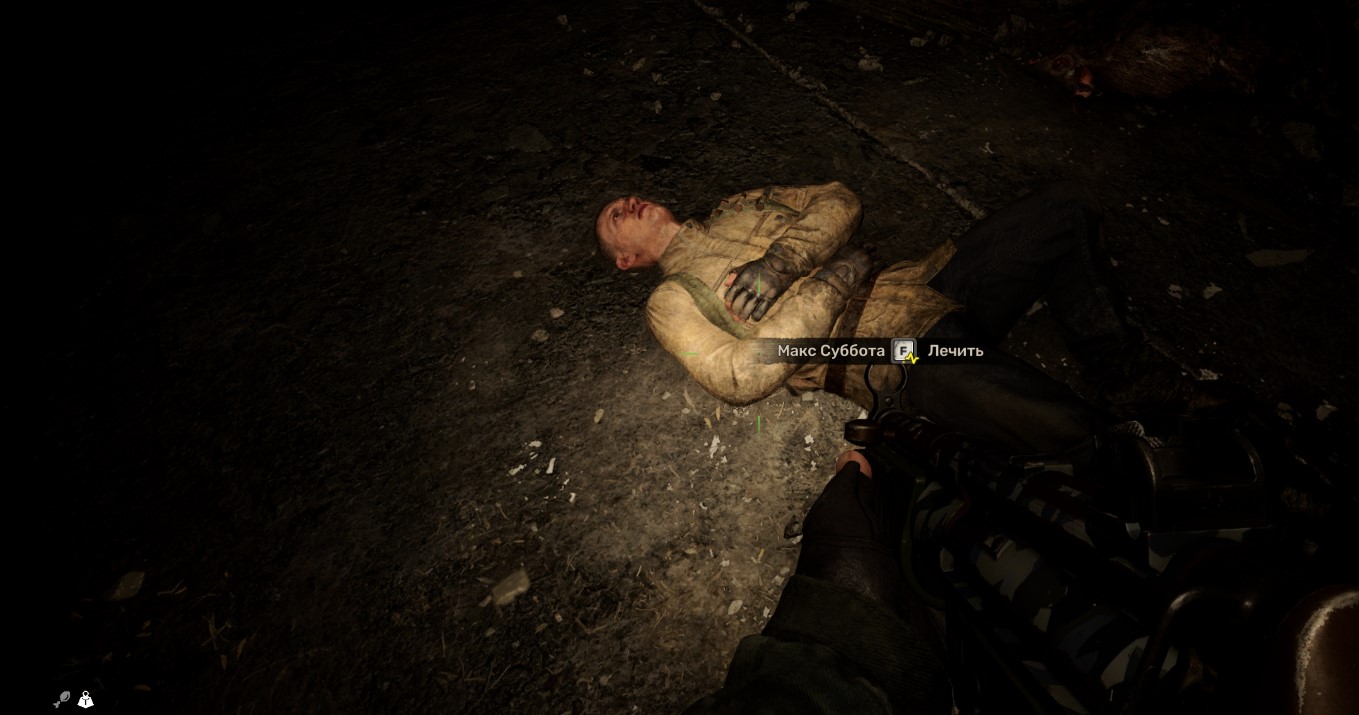 Продвигайтесь дальше по бункеру, осматривая каждое помещение. В самой дальней комнате вы обнаружите тяжелораненого Макса Субботу. Окажите ему помощь, используя аптечку, а затем поговорите с ним, чтобы узнать, что случилось с группой Мастифа и получить новые зацепки.