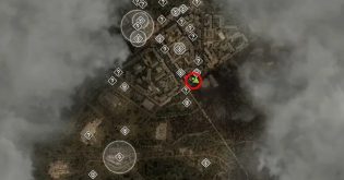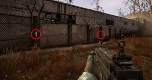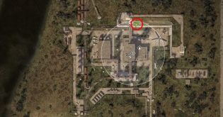 Юго-восточный КПП: Дверь можно открыть с помощью кода 2711. Внутри вы найдёте противогаз Аэрозащита, спрятанный за столом, а также немного припасов в сейфе.