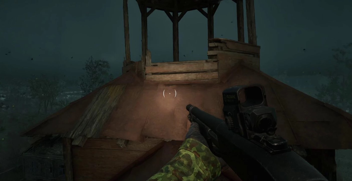 После того как вы пройдете через хижину, начнется трансляция. Поспешите к входу на базу.