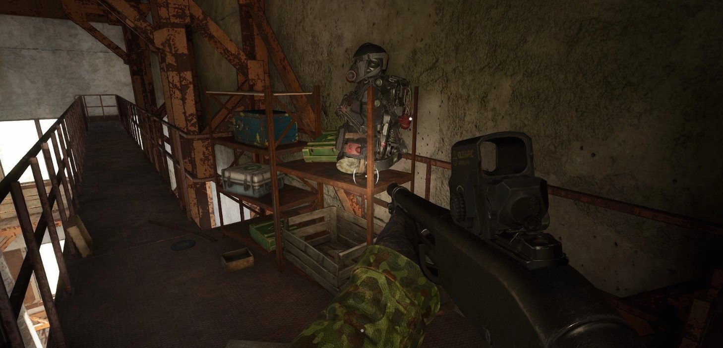 Альтернативный вариант — отправиться к Военным складам в районе Радар-Дуга. Здесь можно найти костюм SEVA-I. Однако будьте осторожны: вблизи тайника обитает опасный мутант.