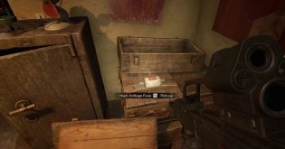 Чтобы отремонтировать вентиляционную систему, потребуется найти предохранитель. Он находится в здании, где вы ранее общались с профессором. Спуститесь на первый этаж и отправляйтесь в складское помещение с полками и металлическими решетчатыми дверями. Ищите деревянные ящики возле сейфа — предохранитель лежит прямо на них.