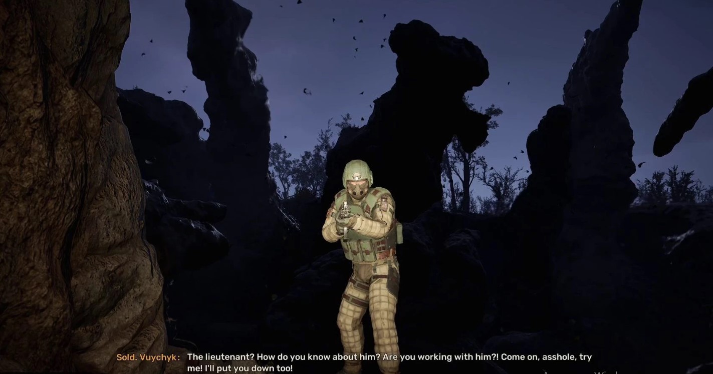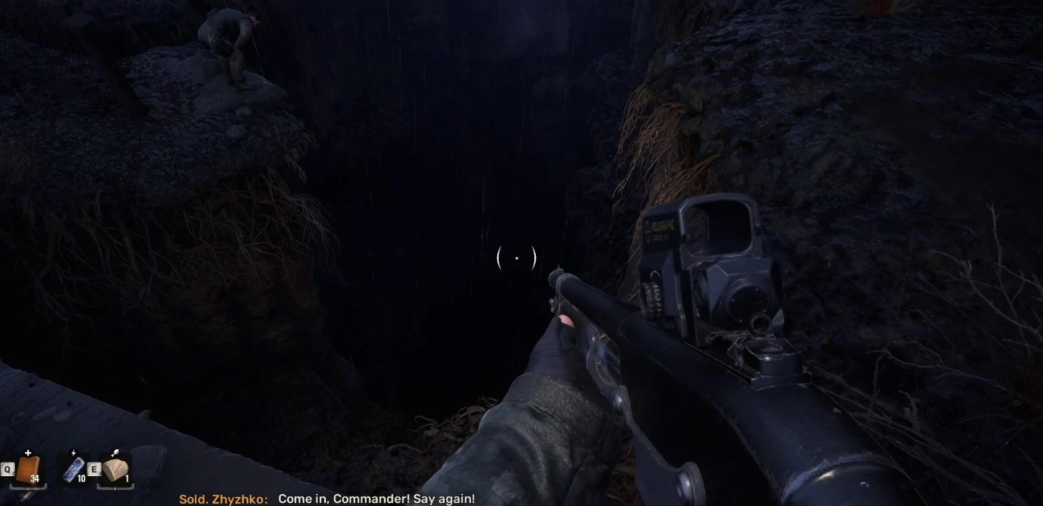Как только вы доберётесь до этой локации, вы встретите напуганного солдата, который умоляет вас о смерти, утверждая, что он не может продолжать жить в таких условиях. Если вы откажетесь выполнить его просьбу, он выйдет из себя и откроет огонь по вам. Будьте готовы к этому неожиданному повороту событий.