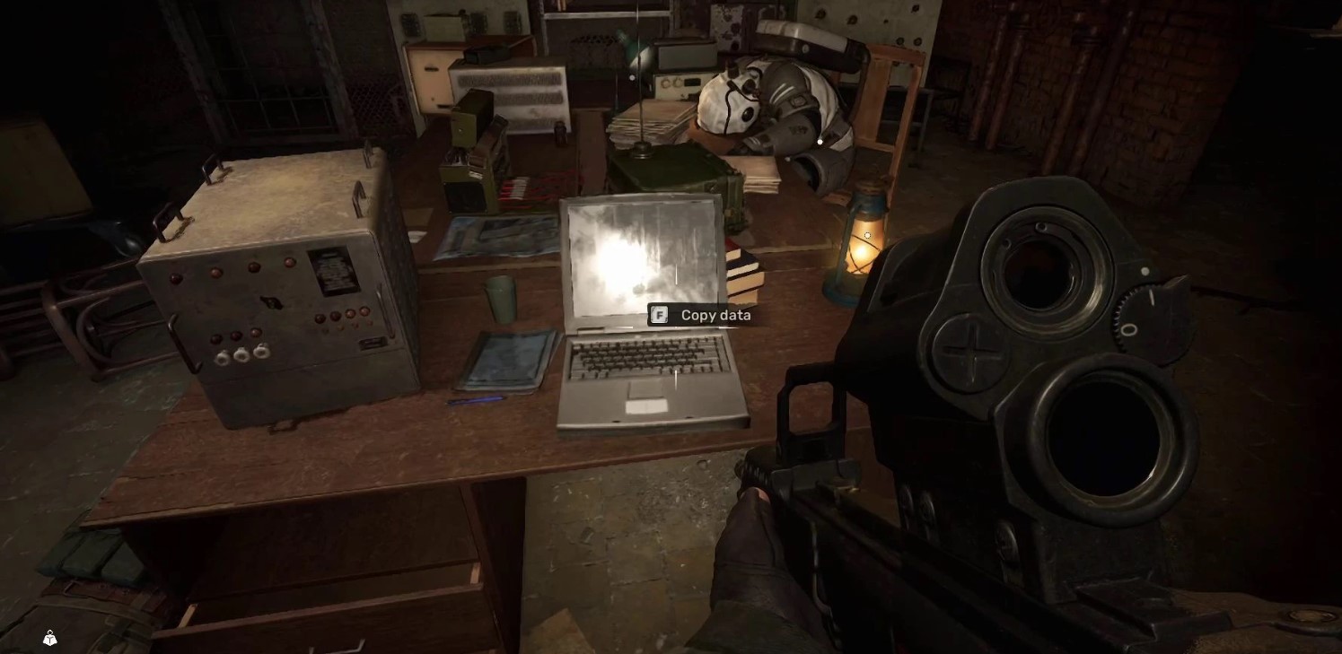 После того как цикл завершится, вернитесь в помещение, где вы встретили Штерева. Здесь найдите ноутбук на столе и скачайте с него данные. Как только загрузка будет завершена, миссия считается выполненной.