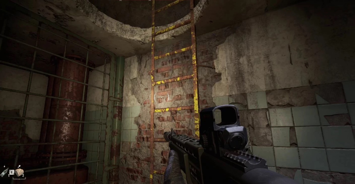 Осмотритесь в помещении, чтобы убедиться в безопасности, и затем поднимитесь по лестнице. Перейдите по мосту, внимательно следя за возможными угрозами вокруг, поскольку в этих местах часто можно встретить врагов или аномалии.