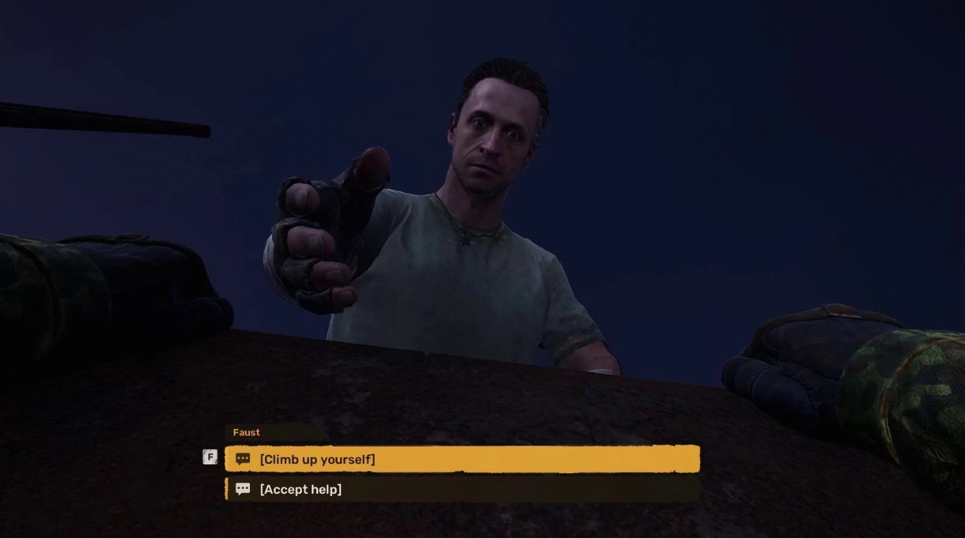 Перед смертью Фауст передаст Скифу видение. Когда игра предложит схватить его за руку, избегайте этого — иначе Фауст сбросит Скифа. Выберите вариант, при котором главный герой сам поднимется на мачту.