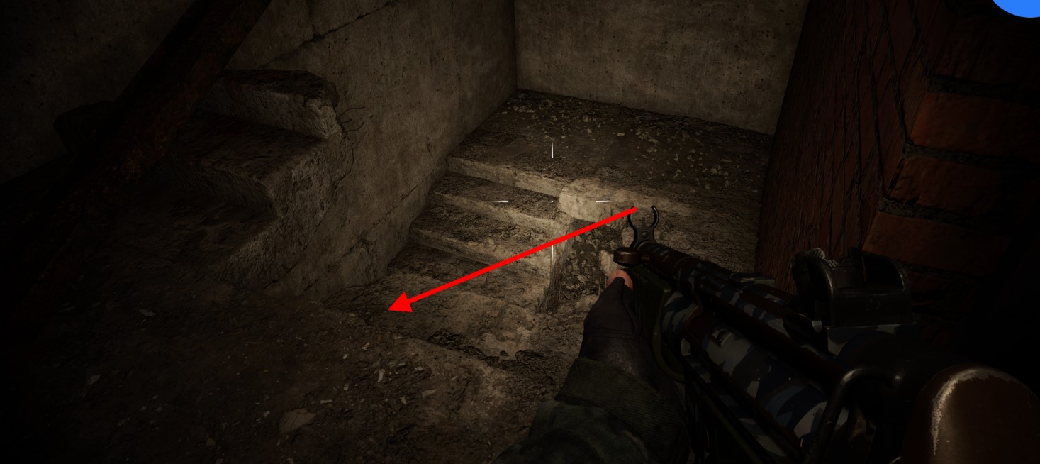 После освобождения пленника вернитесь к месту, где вы поднимались через окно, и воспользуйтесь спуском вниз, который вы заметили ранее. Спустившись, поверните направо, а затем снова направо, двигаясь по коридору. Внимательно осматривайте окружение — здесь можно найти полезные предметы, такие как аптечки или патроны. Пройдите через дыру в стене, которая выведет вас к следующему участку задания.