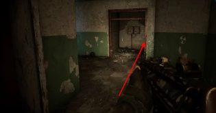 Затем продолжайте движение по коридору и обратите внимание на комнату с газовым облаком справа. Преодолев облако, вы попадете в следующую комнату через дыру в стене. Здесь, за шкафчиками в углу, вы найдете костюм ССП-99 Эколог, который предлагает улучшенную защиту от радиации.