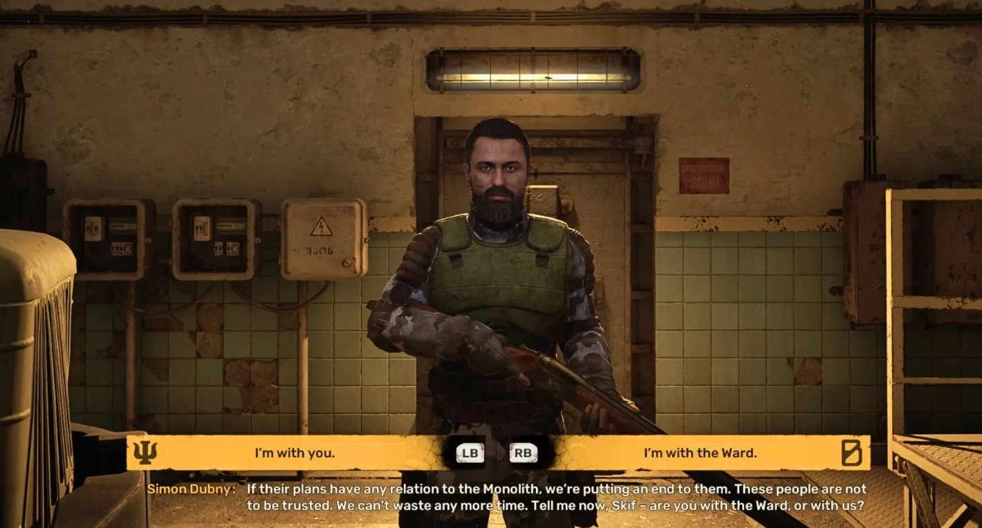 Этот выбор не лишает вас шанса встать на сторону Ward в будущем, но если изначально вы уже выступали против этой фракции, то вероятнее всего, ваш конфликт с ними станет окончательным. Однако, поддержав Рихтера и Spark, вы значительно приблизитесь к их финалу в Stalker 2.