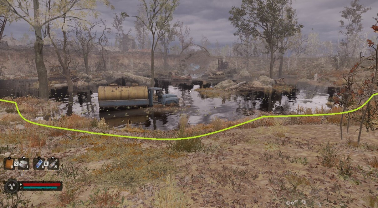 Когда опасность временно утихнет, не теряя времени, двигайтесь к берегу. Там вы сможете окончательно покинуть зону действия Бульбы и насладиться заслуженной наградой — легендарным артефактом.
