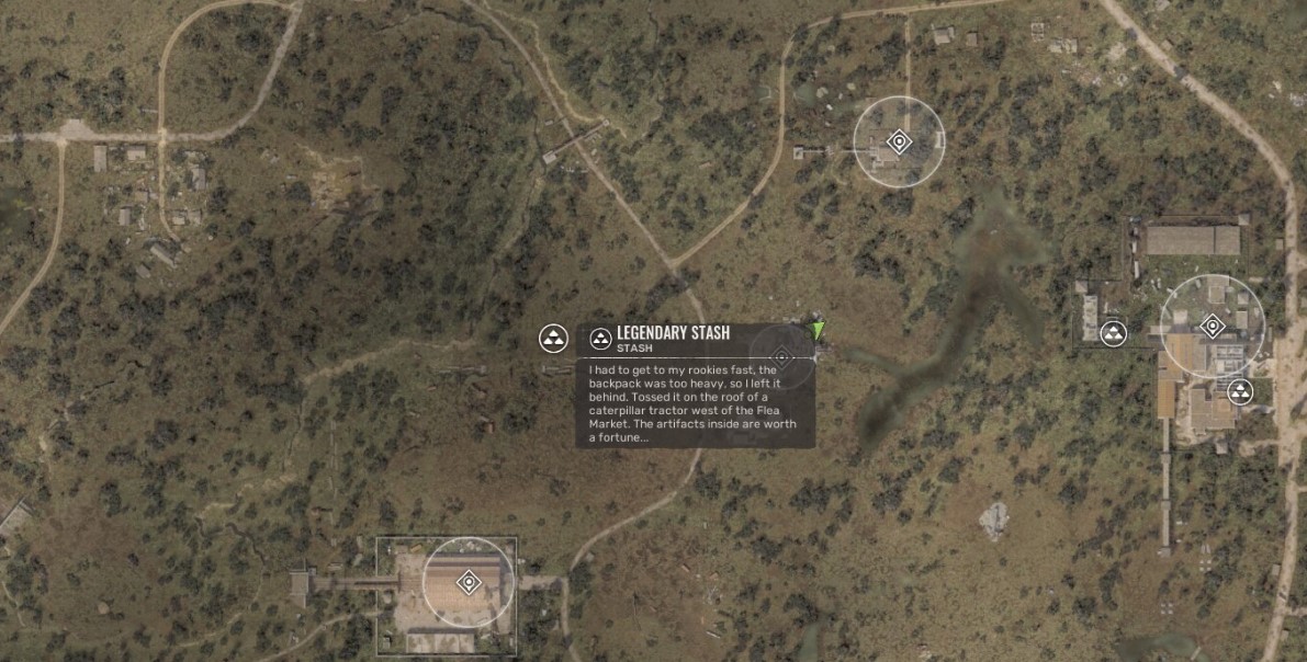 Стоит учитывать, что местоположение схрона представляет собой радиационно опасную зону, поэтому, если у вас нет с собой водки или других средств защиты от радиации, не стоит задерживаться в этом месте надолго. Сам схрон находится на крыше желтого трактора. После того как вы осмотрите тайник, вы обнаружите кусок хлеба и записку с надписью Совет от Легенды.