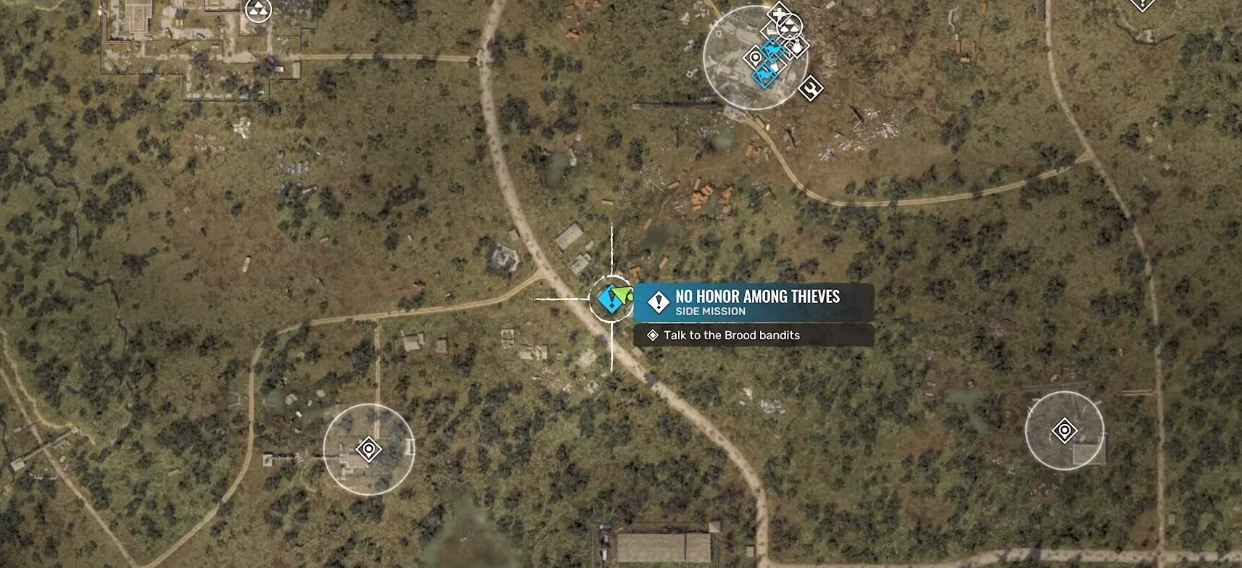 Найдите торговца Гурона и поговорите с ним. Он предложит вам побочный квест под названием Бандитский беспредел (No Honor Among Thieves).