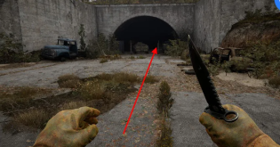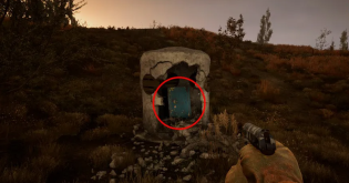 Чтобы добраться до тайника, двигайтесь по дороге на северо-запад, пока не найдете холм, на который можно подняться. Затем вернитесь к трубопроводу и спрыгните вниз, чтобы попасть к схрону.