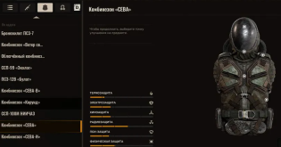 СЕВА — это высококачественная броня, произведенная за пределами Зоны. Комбинезон сочетает легкий бронежилет, закрытую систему дыхания и технологии, которые эффективно защищают от аномальных воздействий и радиации.